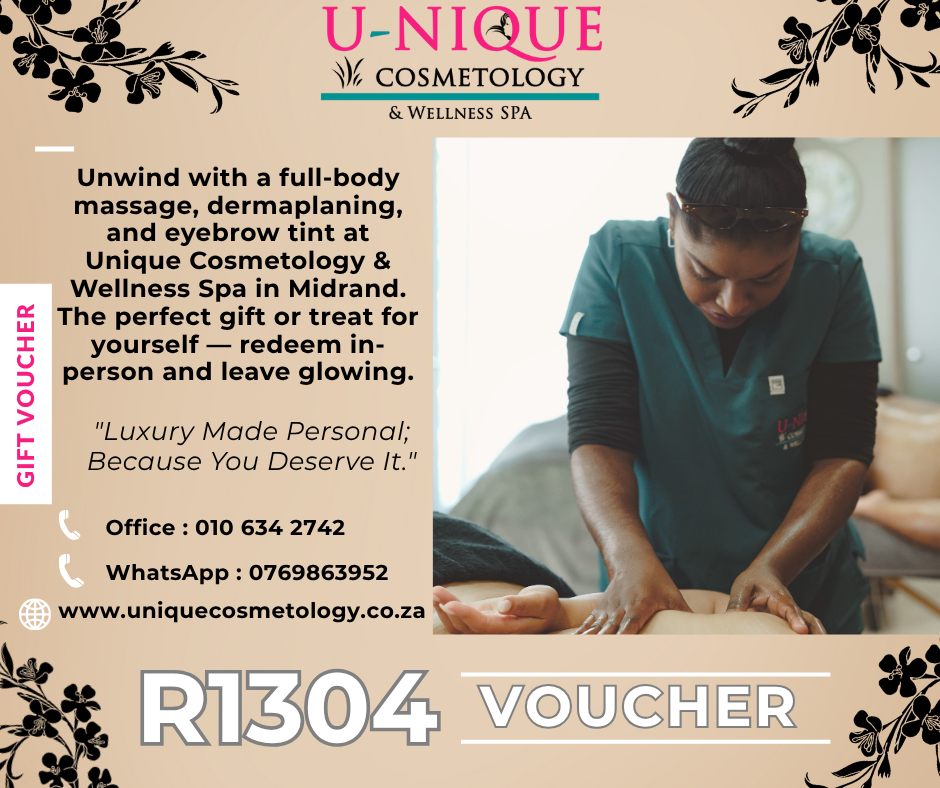 Redemption: In-person at Unique Cosmetology and Wellness Spa, Midrand